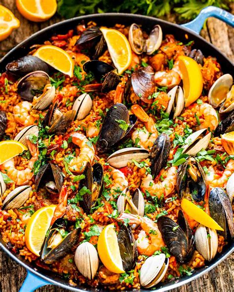 Recipe video above. The most famous Spanish dish of them all! Paella is meant to be a fun relaxed dish, so don't get hung up about having the exact same seafood I've used - see Notes. And don't be scared of making paella - it is actually very forgiving if you have the right liquid/rice ratios and follow the order in which I cook things!
