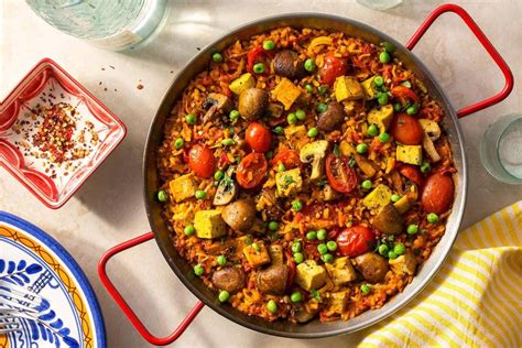 Spanish Paella With Tofu, Mushrooms, And Peas